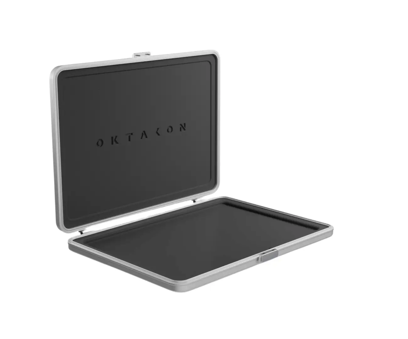 Since our goal was to offer you a perfectly fitting hard case in a slim design, you can only fit a few sheets of paper at most. The hard case is designed to be minimalistic, space-saving, and easy to carry. You can quickly stow the laptop bag in your backpack or another bag.