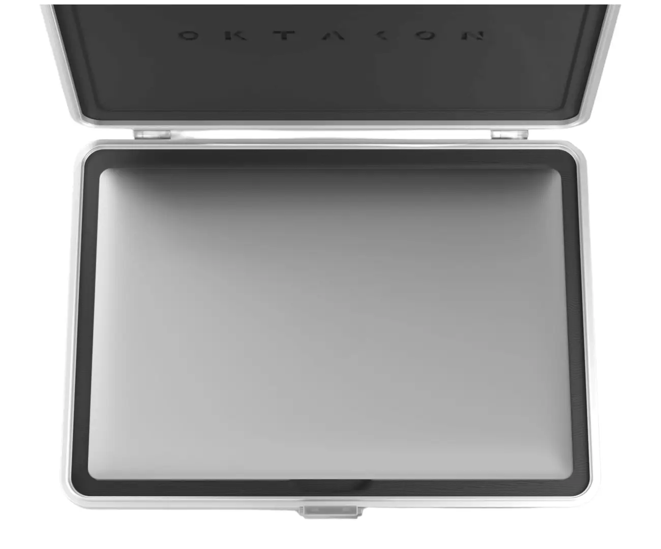 You can place any laptop or tablet in the hard case as long as it does not exceed the maximum internal padding dimensions (currently for the Macbook Pro 13-inch) of 30.4 x 20.2 x 1.6 cm. Please note that smaller devices may move or wobble inside the hard case, depending on the size difference. Only the Macbook Pro 13-inch (from 2016) fits perfectly.